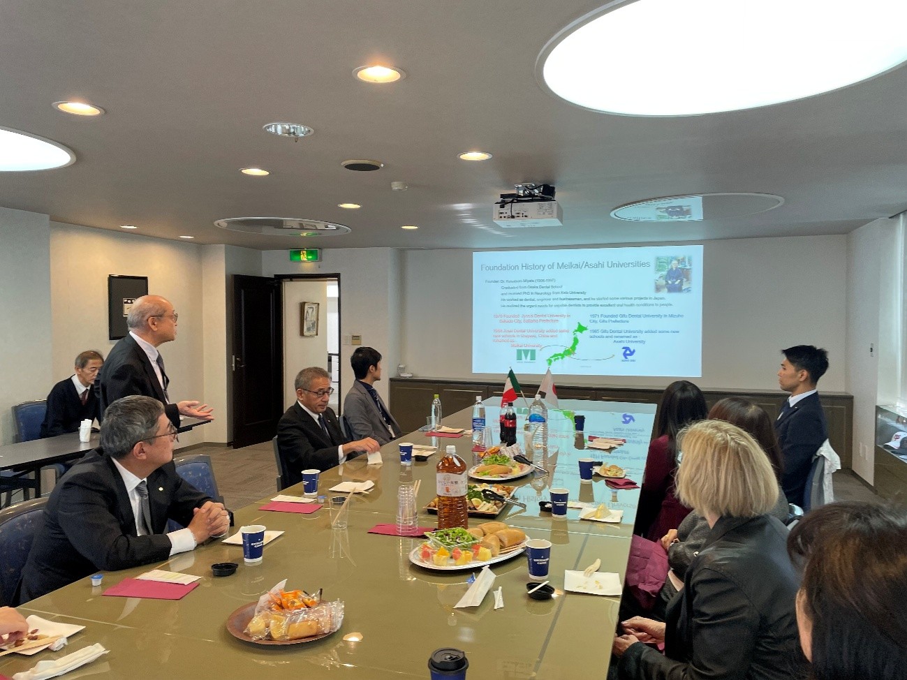 当日は、ちょうど歯学部生の交換研修の引率で来日していた同大学のインストラクターDr. Tiziana Doldoも同席し、終始和やかな雰囲気の中で活発な意見交換が行われました。