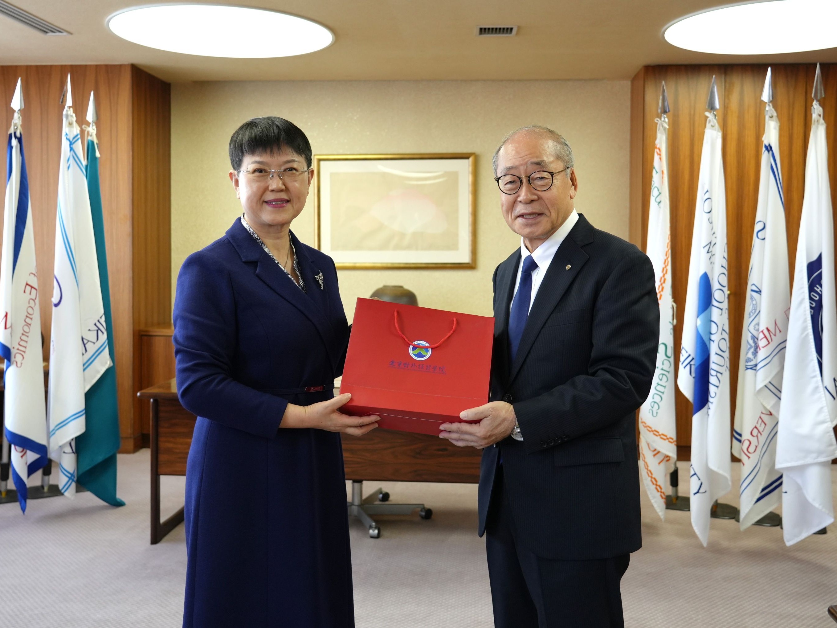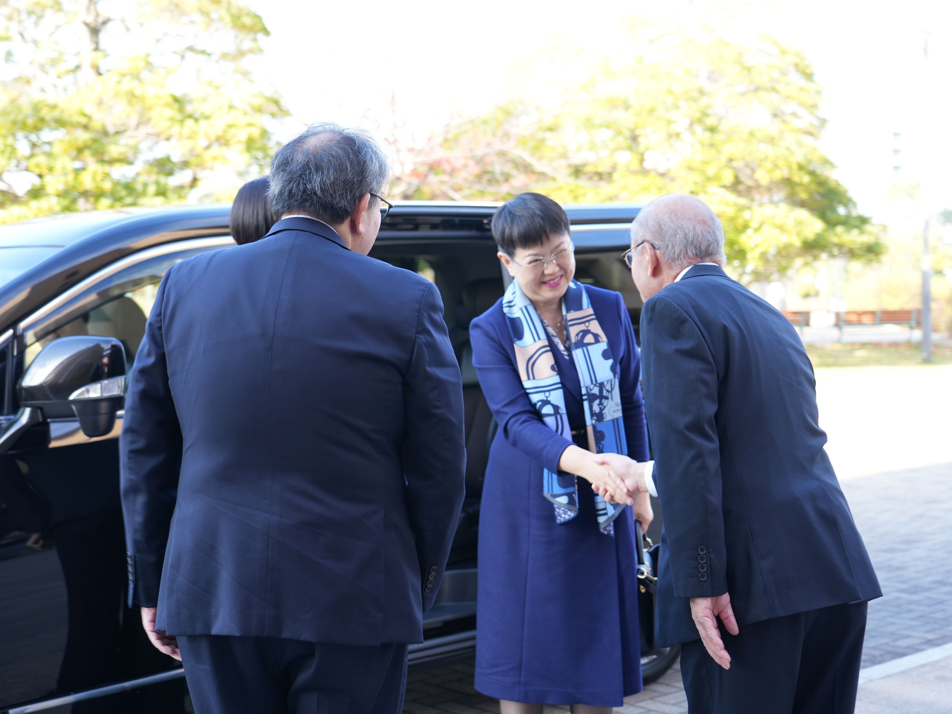 中嶌裕学長との懇談では、両者の教育や文化に関する意見交換を行い、和やかな雰囲気のなかで相互理解を深めました。続いて、浦安キャンパス内の施設を見学し、本学の研究・学習環境について理解を深める有意義な機会となりました。