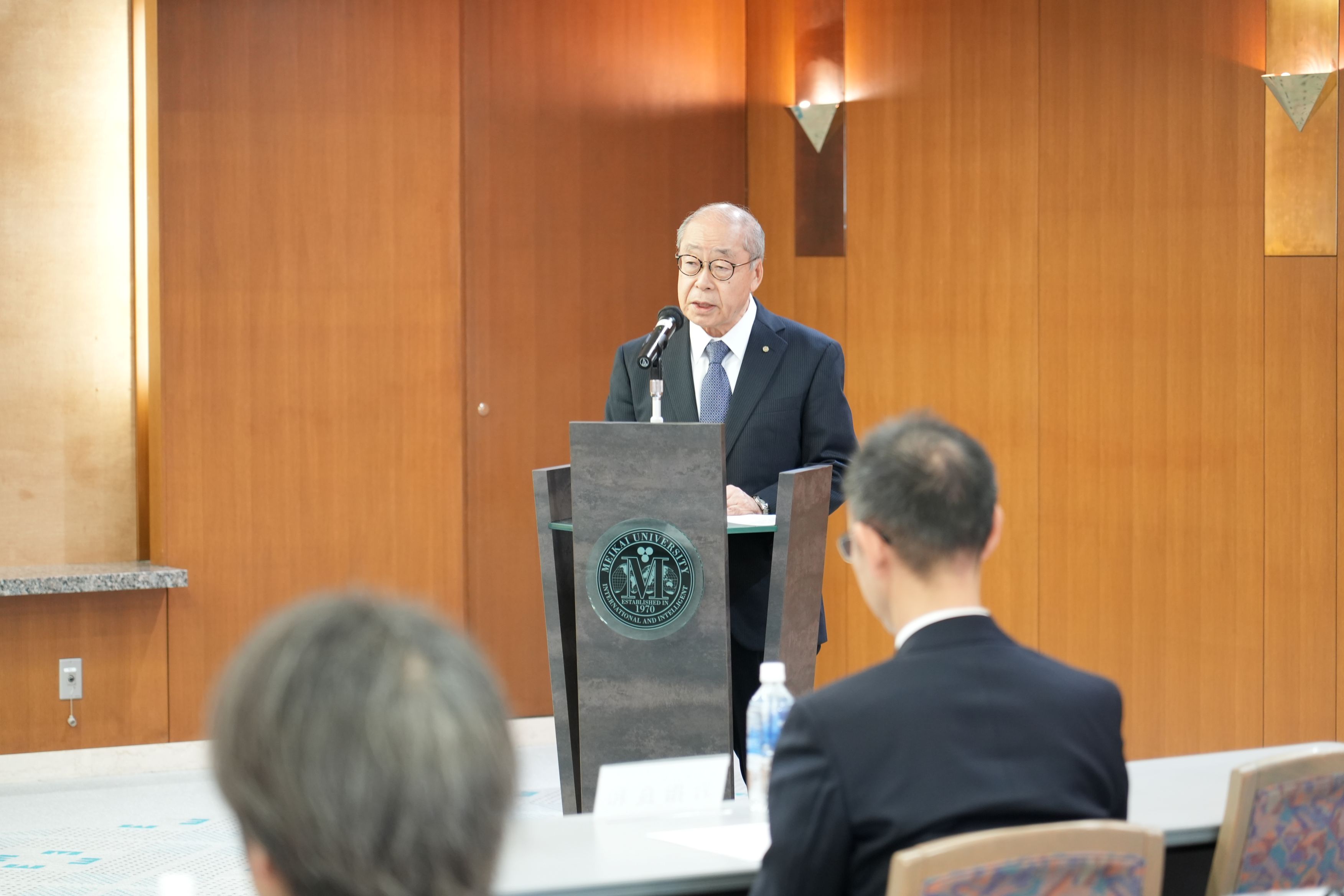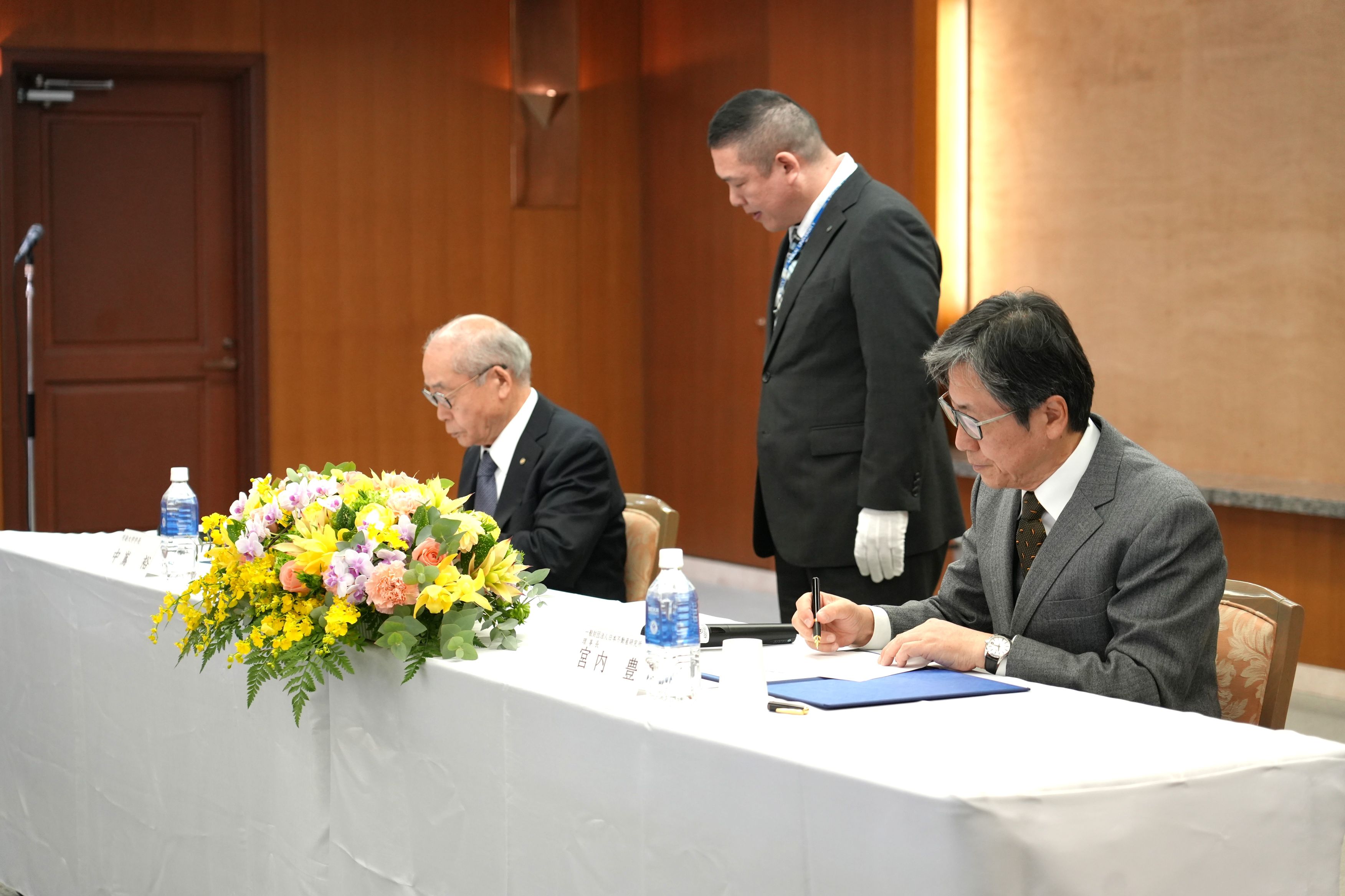 明海大学 中嶌裕学長(左)、一般財団法人日本不動産研究所 宮内豊理事長(右)